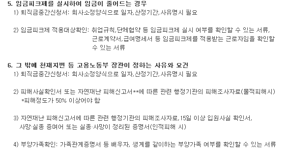 5. 정관 또는 정관에서 위임된 퇴직급여지급규정에 따라 장기 요양 등 다음 각각에서 정하는 사유로 그 때까지의