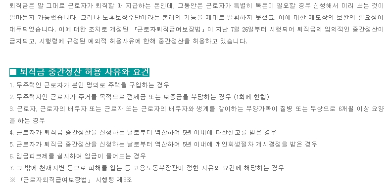 3. 근로자퇴직급여보장법 제8조 제2항에 따라 퇴직급여를 중간정산하여 지급한 때